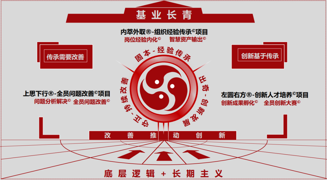 因此在做产品的时候,我就思考在培训产品上有什么是不变的呢?其实无论是一个组织,还是一个个人,我们要想长期可持续的走下去,都离不开三件事情:固本、守正、出奇。固本是什么?更多的是,我能不能把曾经好的东西能够流传下来,这个主要在于经验的一个传承。我们现在动不动就讲创新,但是创新的前提,我们能不能把过去好的东西吸收传承下来。如果我们只知道传承,只知道躺在过去的老路上,那肯定没办法往前行。传承,它是需要改善的。当然,如果我们要想突破就需要创新发展,所以改善又能推动创新。